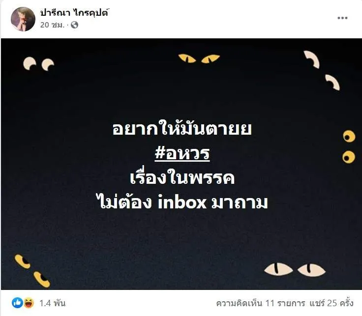 ด่าใคร? "ปารีณา" ติดแฮชแท็ก #อหวร