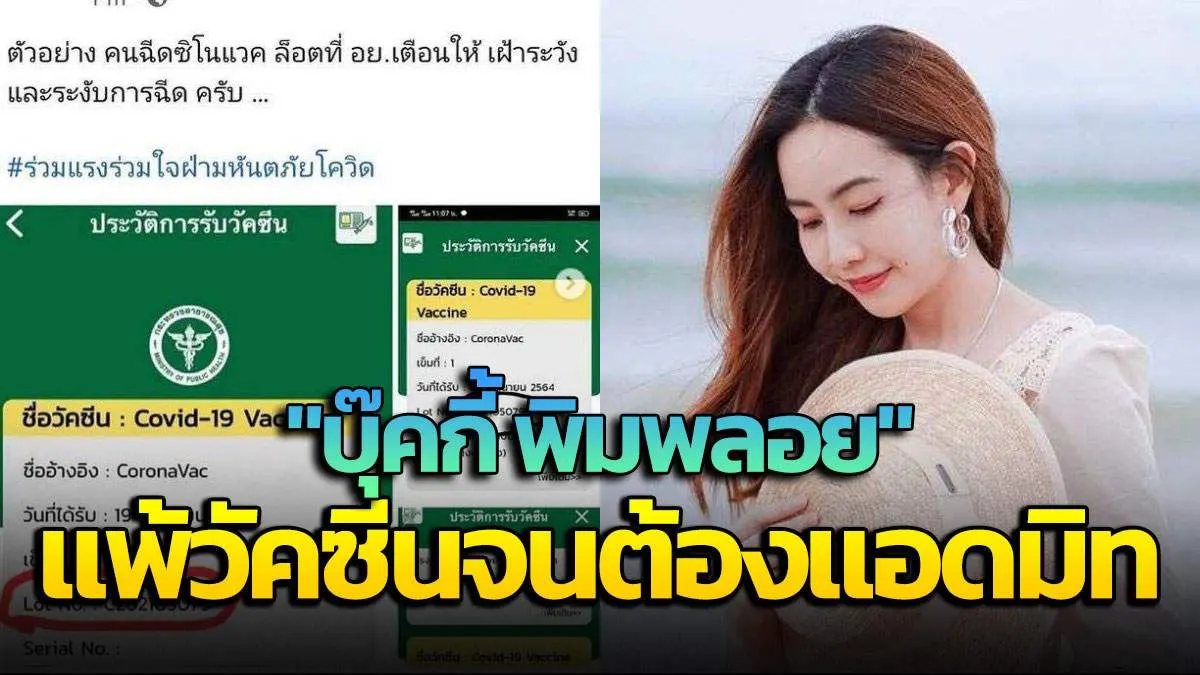 อดีตนางเอก "บุ๊คกี้ พิมพลอย" แพ้วัคซีนโควิดอย่างหนัก จนต้องแอดมิท