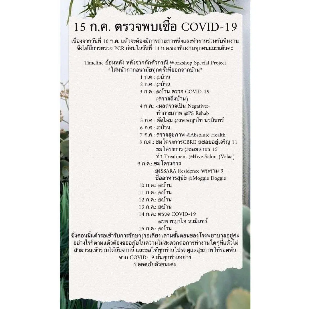 Timeline ย้อนหลัง หลังจากกักตัวกรณี Workshop Special Project *ใส่หน้ากากอนามัยทุกครั้งที่ออกจากบ้าน*