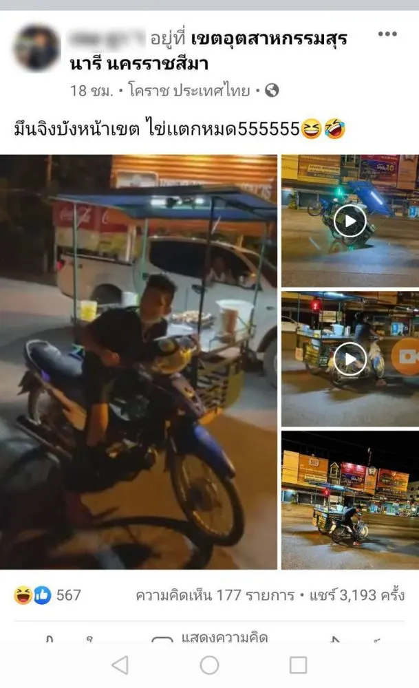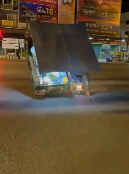 บังขายโรตี โชว์ยกล้อกลางถนน ไข่ร่วงกระจาย สุดท้ายโดนตำรวจจับ