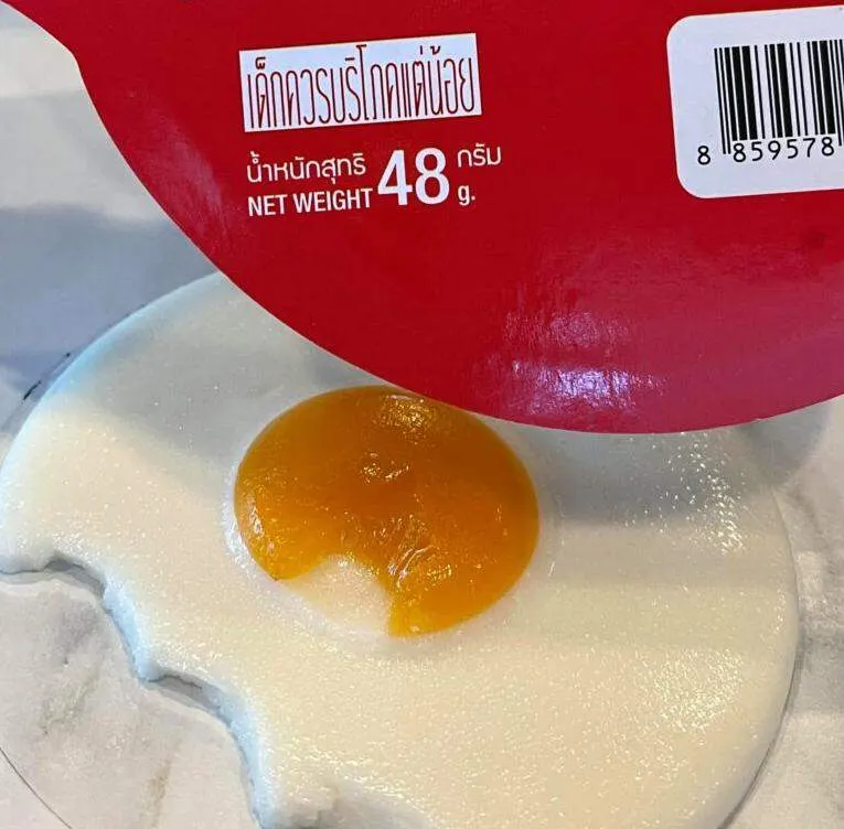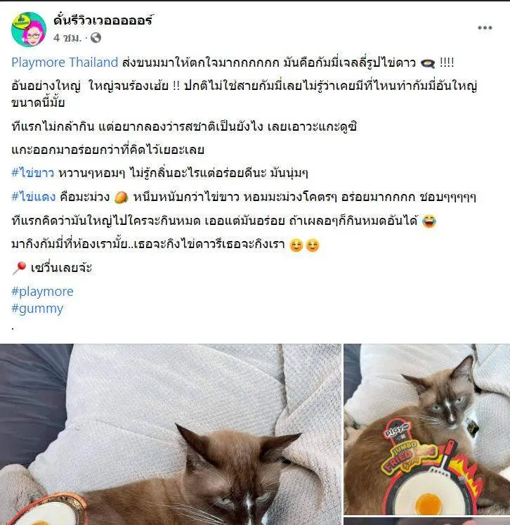 เป็นอีกหนึ่งเมนูของหวาน ที่หลายคนโปรดปรานเลยทีเดียวค่ะ สำหรับขนมกัมมี่ เยลลี่เหนียวๆหนึบๆ หอมหวาน ซึ่งก็มีรูปทรงต่างๆมากมาย น่ารักน่ารับประทาน แถมซื้อให้คนพิเศษก็น่ารักสุดๆ กัมมี่รูปไข่ดาว บิ๊กบึ้ม ที่นอกจากหน้าตาจะน่ารักแล้ว รสชาติยังอร่อยปากอีกด้วย โดยเฟซบุ๊กเพจ ดั๋นรีวิวเวอออออร์ ได้เผยภาพ "Playmore Thailand ส่งขนมมาให้ตกใจมาก มันคือกัมมี่เจลลี่รูปไข่ดาว อันอย่างใหญ่ ใหญ่จนร้องเฮ้ย ปกติไม่ใช่สายกัมมี่เลยไม่รู้ว่าเคยมีที่ไหนทำกัมมี่อันใหญ่ขนาดนี้มั้ย ทีแรกไม่กล้ากิน แต่อยากลองว่ารสชาติเป็นยังไง เลยเอาวะแกะดูซิ แกะออกมาอร่อยกว่าที่คิดไว้เยอะเลย ไข่ขาว หวานๆหอมๆ ไม่รู้กลิ่นอะไรแต่อร่อยดีนะ มันนุ่มๆ ไข่แดง คือมะม่วง หนึบหนับกว่าไข่ขาว หอมมะม่วงโคตรๆ อร่อยมาก ชอบๆ ทีแรกคิดว่ามันใหญ่ไปใครจะกินหมด เออแต่มันอร่อย ถ้าเผลอๆก็กินหมดอันได้ มากินกัมมี่ที่ห้องเราไหม"