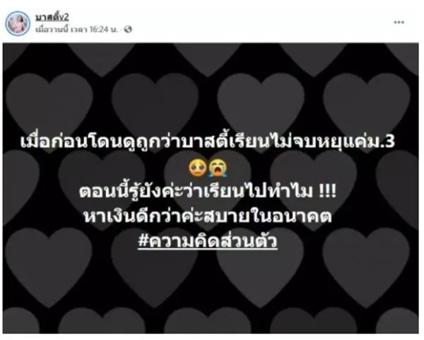ทัวร์ลงหนัก! บาสตี้ เน็ตไอดอลสาวสอง หลังโพสต์ เรียนไปทำไม หาเงินดีกว่า