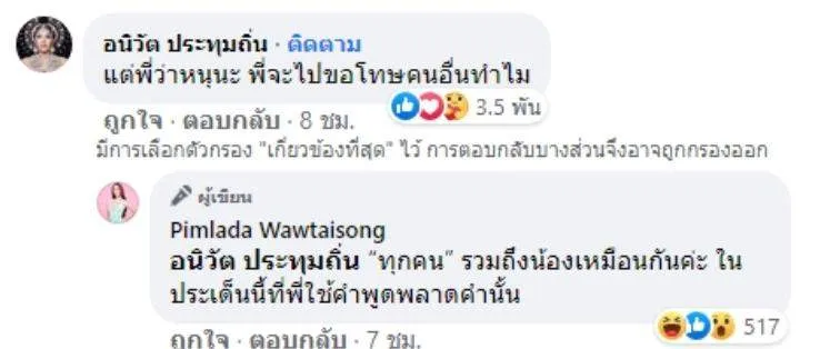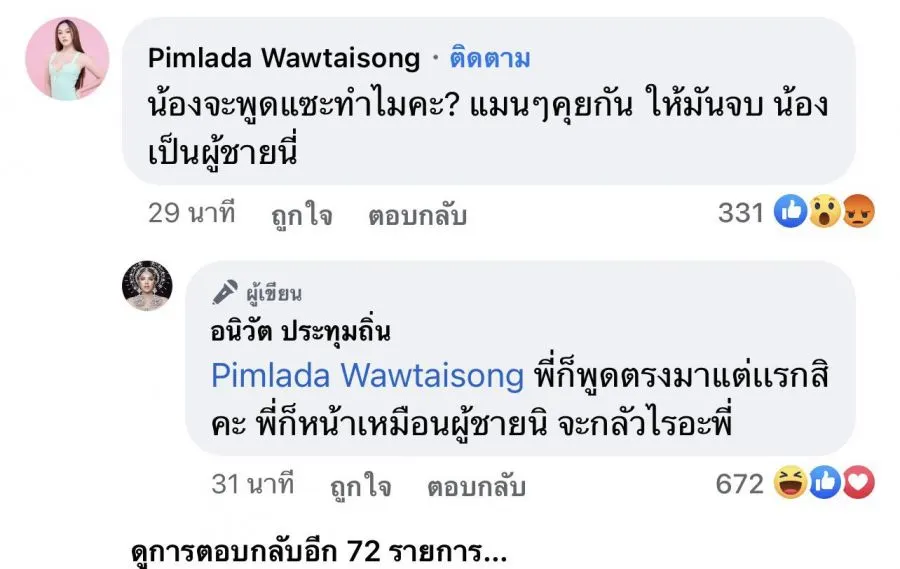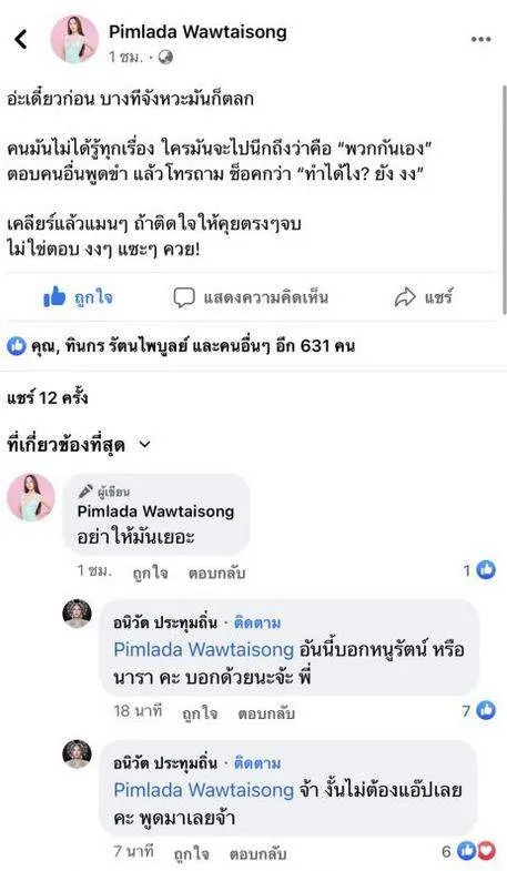 จากนั้นก็คือ ใส่กันไม่ยั้งเลยจ้าาา คำต่อคำ ฟาดได้ฟาด ในระหว่างที่ทั้งคู่กันกำลังเถียงกันอยู่นั้น ก็มีชาวเน็ตได้แคป คอมเมนต์ที่สอดอ แซะนาราว่า..“น้องจะพูดแซะทำไมคะ? แมนๆคุยกันให้มันจบ น้องเป็นผู้ชายนี่” ไปลงทวิตเตอร์พร้อมติด #สอดอเหยียดเพศ