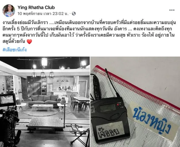 หญิง รฐา ได้โพสต์ข้อความผ่านเพจเฟซบุ๊กว่า งานเลี้ยงย่อมมีวันเลิกรา เหมือนเดินออกจากบ้านที่ครอบครัวที่มีแต่รอยยิ้มและความอบอุ่นอีกครั้ง 5 ปีกับการตื่นมาเจอพี่น้องทีมงานนักแสดงทุกวันจัน อังคาร คงเหงาและคิดถึงทุกคนมากๆ หลังจากวันนี้ไป เก็บมันเอาไว้ ว่าครั้งนึงเราเคยมีความสุข หัวเราะ ร้องไห้ อยู่ภายในสตูนี้ด้วยกัน