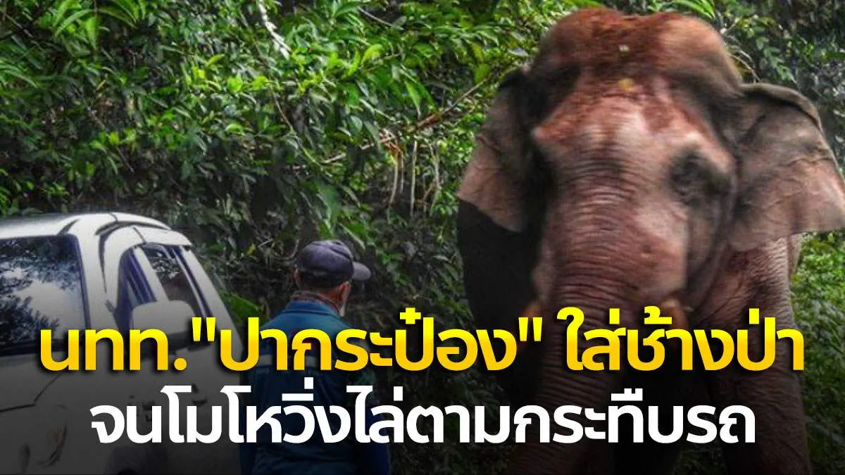 เล่นพิเรนทร์! นักท่องเที่ยว "ปากระป๋อง" ใส่ช้างป่า จนโมโหวิ่งไล่ตามกระทืบรถ