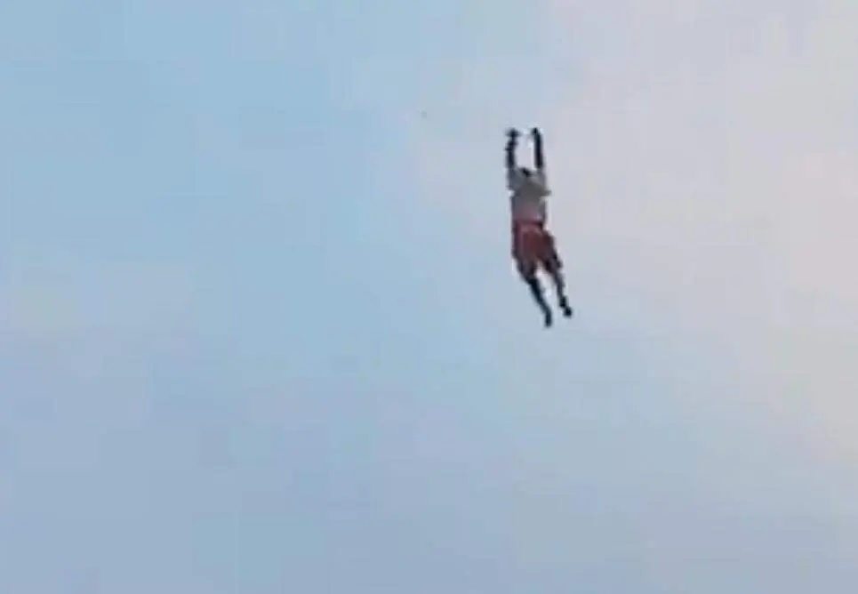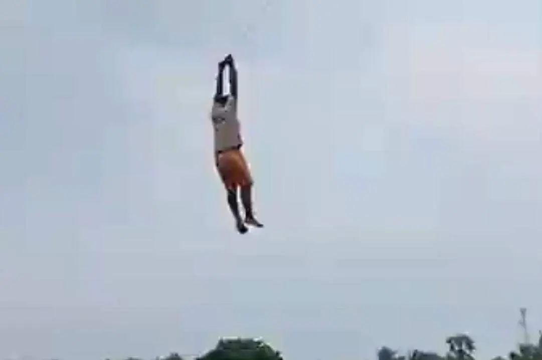 ไม่ยอมปล่อยมือ ทำให้ตัวลอยไปกับเชือกสูงเกิน 10 เมตร
