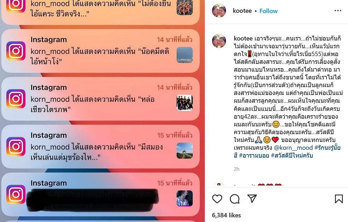 เอาจริงๆนะ…คนเรา…ถ้าไม่ชอบกันก็ไม่ต้องเข้ามาเจอมาวุ่นวายกัน…เห็นแว๊ปแรกตกใจ‼️(อุทานในใจว่าเ...้ยไรเนี่ย555)แต่พอได้สติกลับสงสารนะ…คุณได้รับการเลี้ยงดูสั่งสอนมาแบบไหนหรอ…คุณถึงได้มาด่าทอ มาว่าร้ายคนอื่นเขาได้ถึงขนาดนี้ โดยที่เราไม่ได้รู้จักกัน(เป็นการส่วนตัว)ถ้าคุณเป็นลูกผมก็สงสารพ่อแม่ของคุณ แต่ถ้าคุณเป็นพ่อเป็นแม่ผมก็สงสารลูกคุณนะ…ผมเห็นใจคุณนะที่คุณคิดและเป็นแบบนี้…อีก4วันก็จะถึงวันเกิดครบอายุ42ละ…ผมจะคิดว่าคุณคือเคราะร้ายของผมละกันนะครับ☺️…ขอให้คุณโชคดีและมีความสุขกับวิธีคิดของคุณนะครับ…สวัสดีปีใหม่ครับ