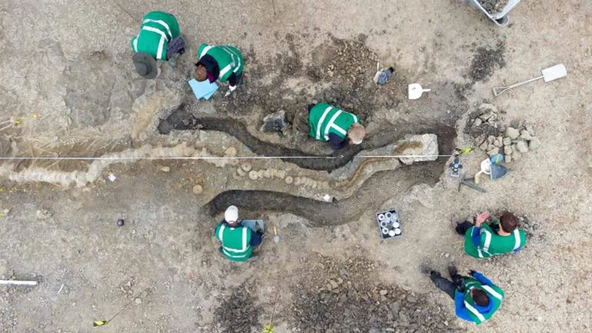 ก่อนหน้านี้เคยมีการพบ ซากฟอสซิล "อิกทิโอซอรัส" ที่มีขนาดเล็กกว่านี้ ในบริเวณพื้นที่ชุ่มน้ำแห่งนี้แล้ว นักวิทยาศาสตร์เชื่อว่า "ยังมีซากฟอสซิล "อิกทิโอซอรัส" อีกมากมาย ที่ยังไม่ถูกค้นพบ"