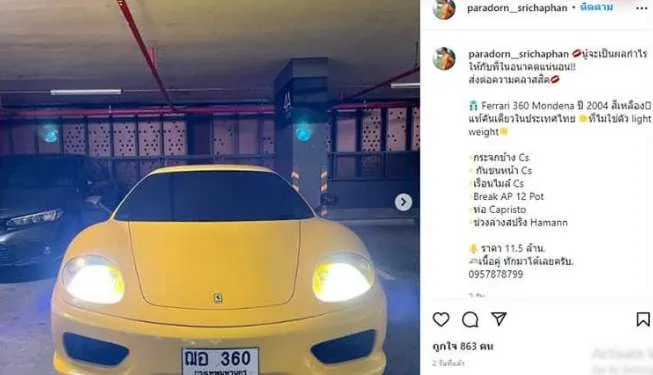 "บอล ภราดร" ประกาศขายเฟอร์รารี 11.5 ล้าน