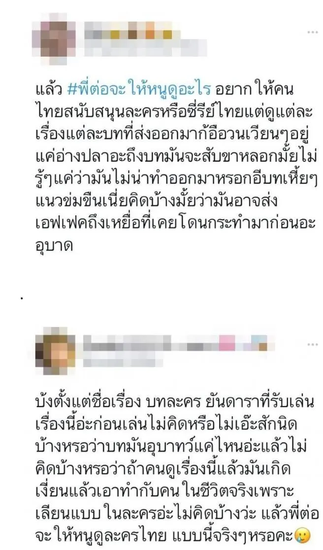 นอกจากนี้ยังมีคนหยิบประเด็นที่ ต่อ ธนภพ เคยกล่าวถึงการที่คนไม่ชมภาพยนตร์หรือละครไทยมาพูดถึง โดยหลายคนมองว่าเพราะละครเป็นแบบนี้จึงไม่มีใครอยากดู
