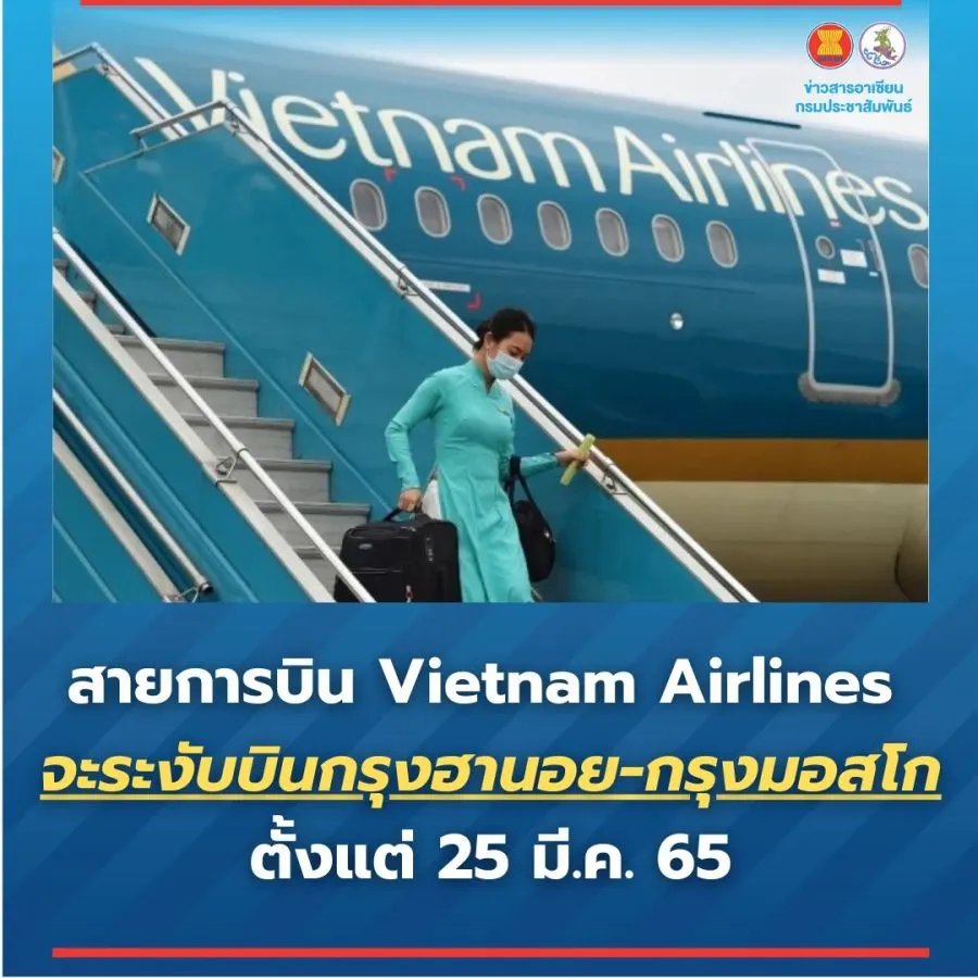 สายการบิน Vietnam Airlines จะระงับเที่ยวบินระหว่างกรุงฮานอยกับกรุงมอสโก สำนักข่าว VnExpress International รายงานเมื่อ 22 มี.ค.65 ว่า สายการบินแห่งชาติเวียดนาม Vietnam Airlines จะระงับเที่ยวบินไป-กลับจากกรุงฮานอย ไปยังกรุงมอสโกของรัสเซีย ตั้งแต่ 25 มี.ค.65 จนกว่าจะมีการประกาศเพิ่มเติม หลังจากที่ความขัดแย้งรัสเซีย-ยูเครน มีความรุนแรงขึ้น