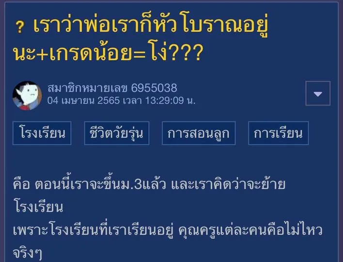 เราว่าพ่อเราก็หัวโบราณอยู่นะ หลังมองว่า เกรดน้อย=โง่???