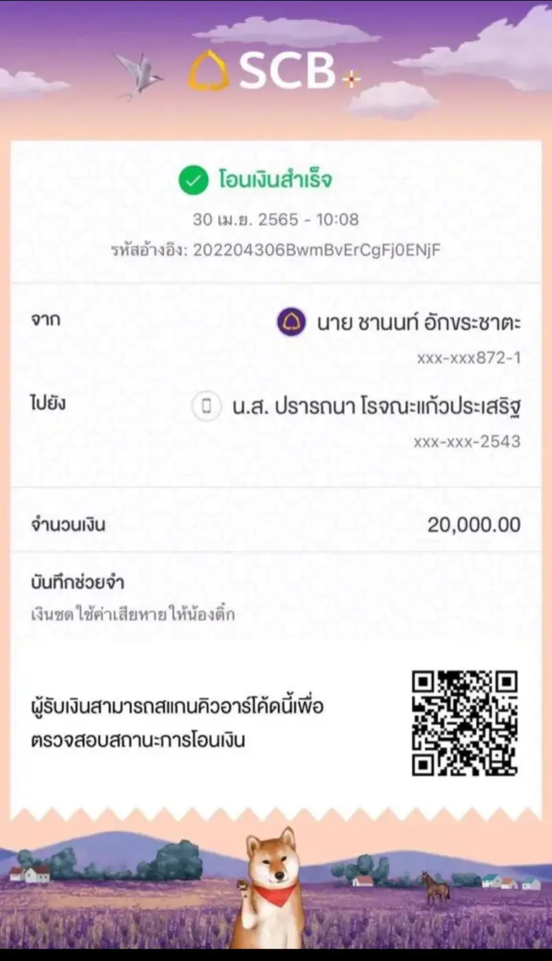 ล่าสุดทาง เพจ drama addict ได้โพสต์ แสดงความดีใจกับผู้เสียหาย พร้อมโชว์สลิปการโอนเงิน ให้ผู้เสียหายแล้วจำนวน 30,000 บาท โดยมีการโอนผ่านบัญชีของผู้จัดการส่วนตัวของ ขุน ชานนท์ รวมสองครั้ง ครั้งแรก เวลา 10.08 น. จำนวน 20,000 บาทและครั้งที่สอง เวลา 10.13 น. อีก 10,000 บาท.-สำนักข่าวไทย