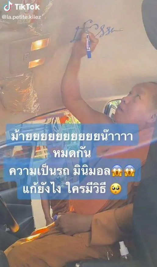 มีสาวโพสต์คลิป ขณะที่หลวงพ่อกำลังบรรจงเขียนยันต์บนหลังคารถ เพื่อเจิมรถคันใหม่ ระบุว่า.. "ว่าด้วยเรื่องเจิมรถ... ม๊ายยยยยยยน๊าาาา หมดกันความเป็นรถมินิมอล แก้ยังไง ใครมีวิธี ?"