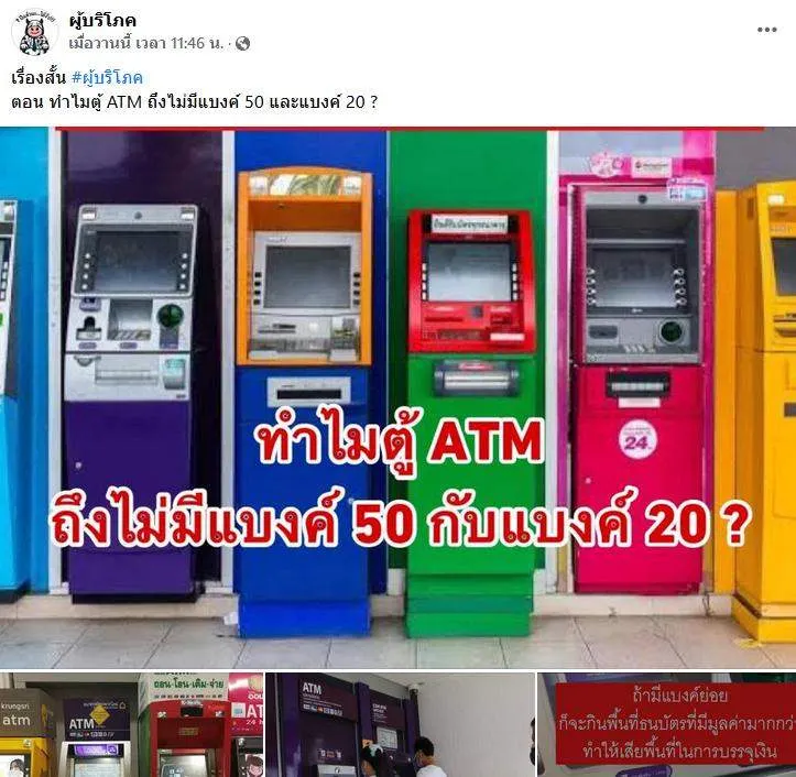 เพจผู้บริโภค ได้ออกมาเผยความจริง ถึงตู้ ATM โดยระบุว่า..