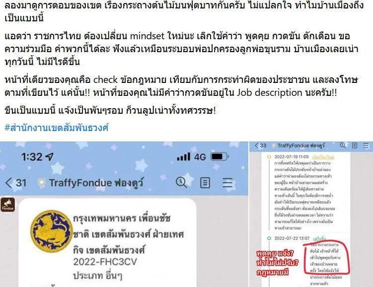 ราชการไทย ต้องเปลี่ยน mindset ใหม่นะ เลิกใช้คำว่า พูดคุย กวดขัน ตักเตือน ขอความร่วมมือ คำพวกนี้ได้ละ ฟังแล้วเหมือนระบอบพ่อปกครองลูกพ่อขุนราม บ้านเมืองเลยเน่าทุกวันนี้ ไม่มีไรดีขึ้น