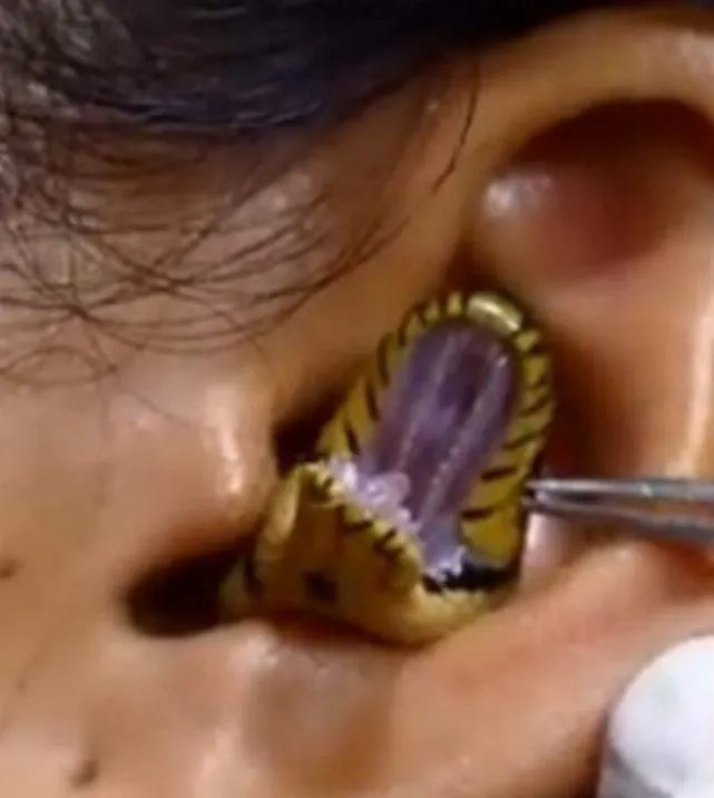 หลัง ผู้ใช้เฟซบุ๊ก รายหนึ่ง โพสต์คลิปวิดีโอบรรยายว่า งูเข้าหูแล้ว โดยมีความยาวเกือบ 4 นาที แสดงให้เห็นว่าคนสวมถุงมือพยายามใช้เครื่องมือเพื่อคีบงูสีดำและสีเหลืองที่โผล่หัว