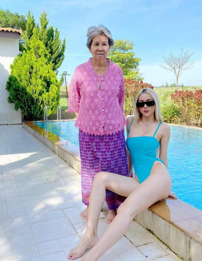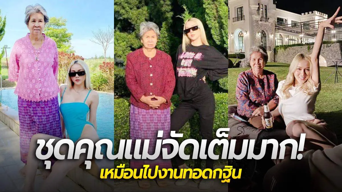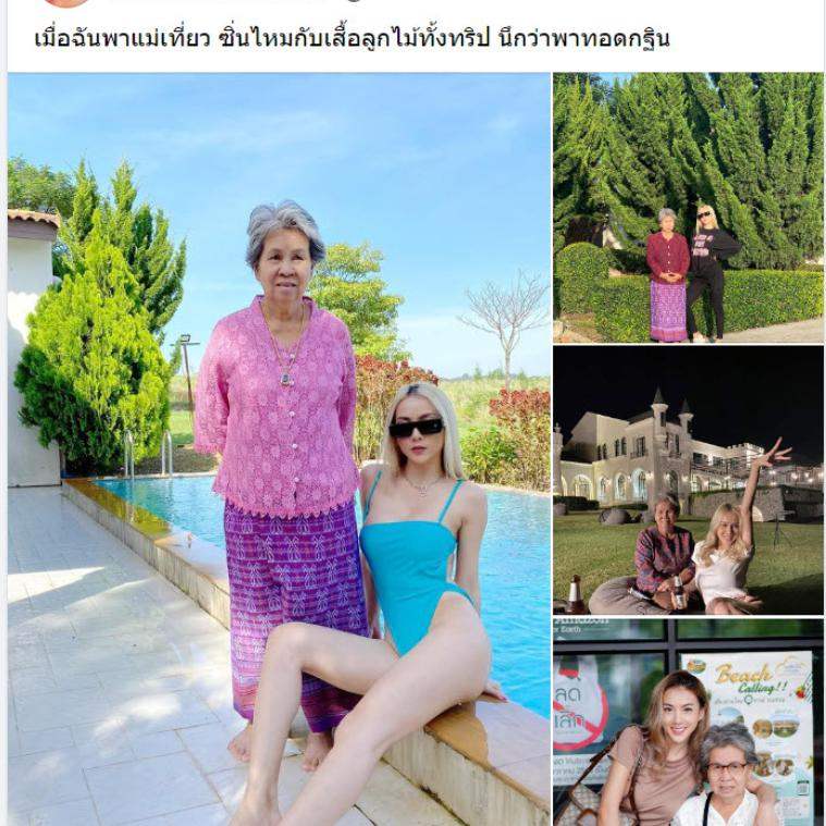เหมือนจะไปเข้าวัดเข้าวา หรือจะไปไปทอดกฐิน โดยโพสต์เฟซบุ๊กได้เผยภาพ พร้อมระบุว่า "เมื่อฉันพาแม่เที่ยว ซิ่นไหมกับเสื้อลูกไม้ทั้งทริป นึกว่าพาทอดกฐิน"