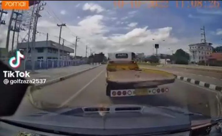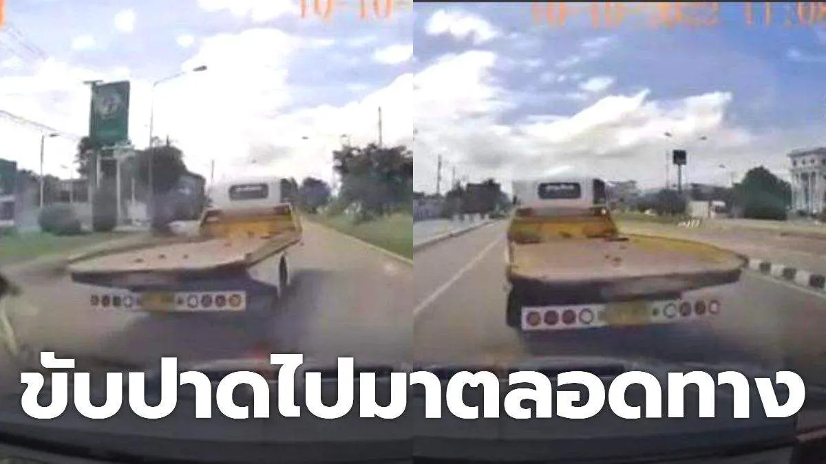 ห้าวจริง! "รถบรรทุก" จับภาพ "รถสไลด์" หัวร้อนสุดโหด ขับปาดไปมาตลอดทาง