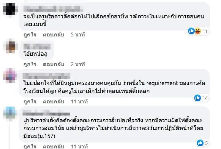 "ตอนเข้าไปดู ครูพูดในไลฟ์เลยว่านักเรียนชื่อxxx ได้แค่ 2 คะแนน ถ้าเราเป็นเด็กคงรู้สึกแย่ ครูควรหยุดเล่นมือถือในเวลาทำงาน"เรียนกับครูต่างชาติเขาเรียกไปดูคะแนนทีละคน มหาวิทยาลัยก็ประกาศคะแนนแบบเห็นแค่รหัส น.ศ.