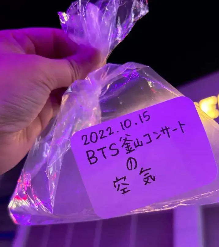 ล่าสุดมี แฟนด้อมชาวญี่ปุ่น ได้ทวีตภาพถ่ายที่มีลักษณะเป็นถุงพลาสติกเปล่าแต่มัดปากถุงเอาไว้ พร้อมระบุแคปชั่นว่า “ของฝากที่เพี่อนอยากได้” เจ้าของทวีตชเฉลยว่า “มันคืออากาศจากคอนเสิร์ต BTS ที่ปูซาน” ที่เพื่อนของเธอฝากมาเก็บ เพราะไม่สามารถเดินทางไปดูด้วยได้นั่นเอง