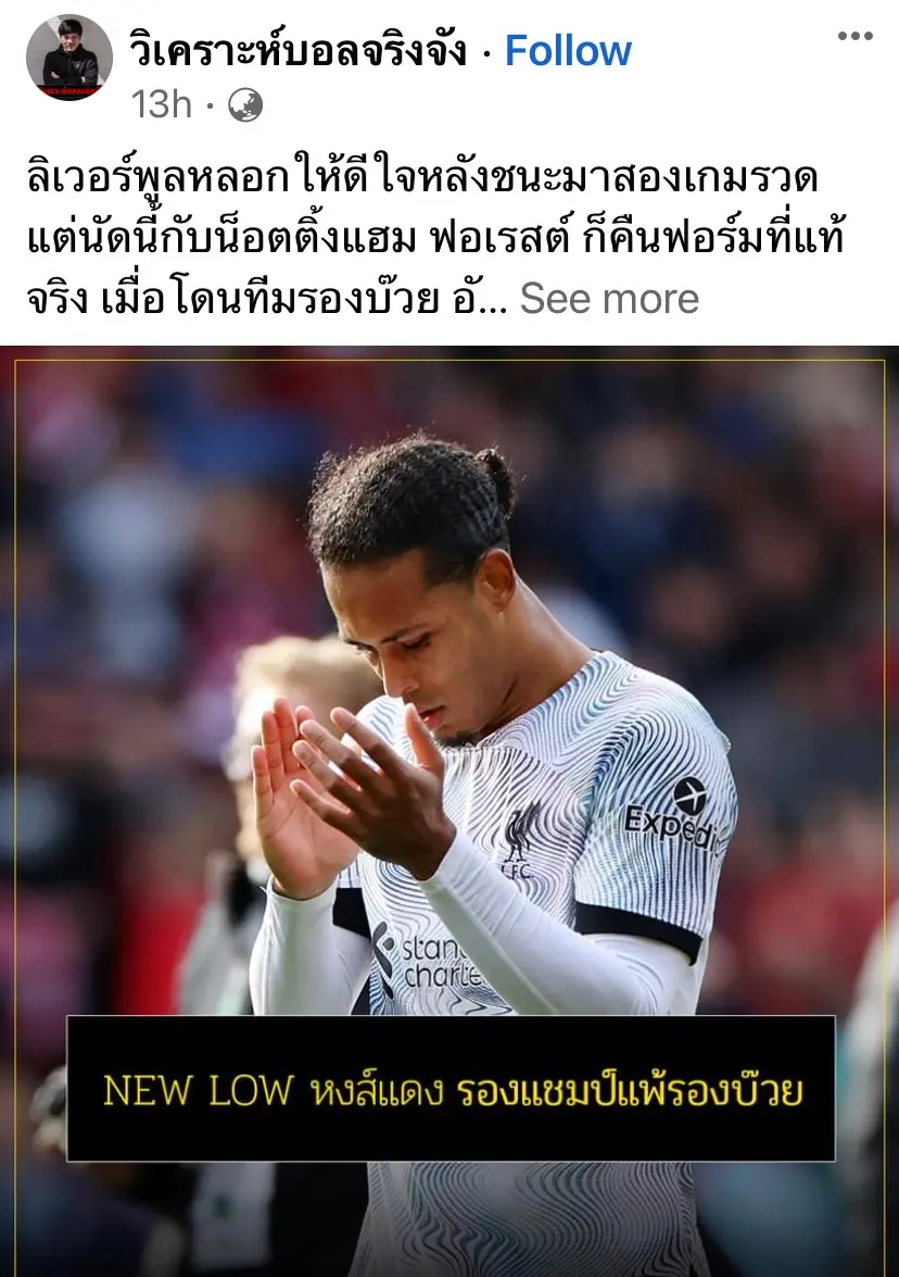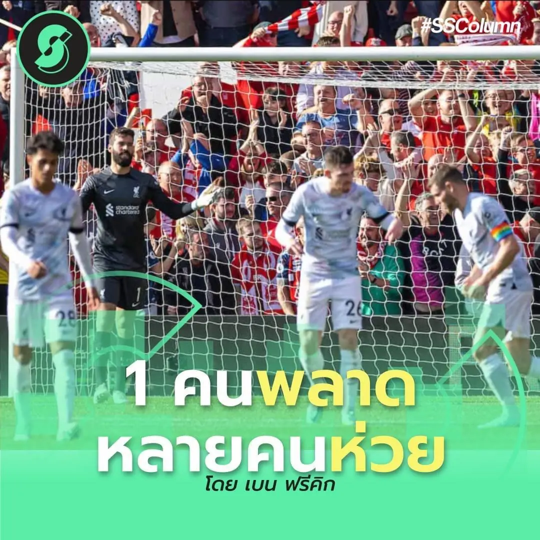 ยกตัวอย่างเหตุการณ์เช่น เมื่อคืนที่ผ่านมา ทีมยักษ์ใหญ่จากฝั่งแม่น้ำเมอร์ซี (ทีมที่สวมชุดแข่งเหย้าสีแดงและฤดูกาลที่แล้วได้ถึงอันดับ 2) บุกไปพ่ายให้กับทีมนอตติงแฮมฟอร์เรสต์ที่เป็นทีมบ๊วยของตารางพรีเมียร์ลีก ด้วยสกอร์ 1-0