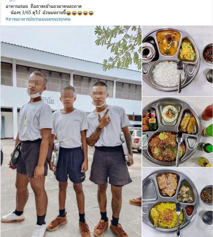 ล่าสุด เพจ “วิ่งตามชีวิต พลทหารเรือ” ได้ลงภาพทหารเรือพร้อมกับอาหารสุดน่ากิน โดยระบุว่าอาหารอร่อย ถือถาดเข้าแถวมาคนละถาด น้องๆ 3/65 ดูไว้ อ้วนแน่งานนี้ #ภาพอาหารประกอบเฉยๆนะทุกคน ชาวเน็ตมากมายที่เป็นหรือเคยผ่านการเป็นทหารมาก่อน มาแห่คอมเมนต์อาหารที่ได้กินจริงๆ