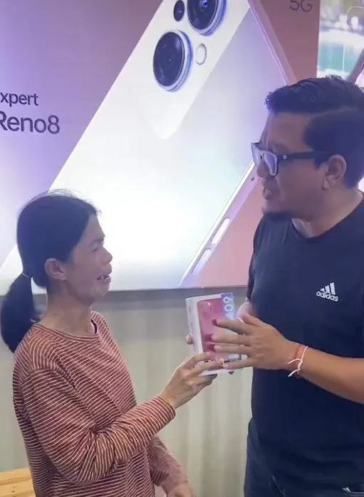 ด้านหลานชายของหญิงคนนี้บอกว่า น้าเคยมีมือถืออยู่ แต่สภาพพังจนใช้ไม่ได้ จึงพยายามหาซื้อเครื่องใหม่ โดยใช้ระบบผ่อน แต่วันแรกที่มาซื้อไม่ได้ ทำให้ไม่ได้โทรศัพท์กลับไป ตอนนี้ น้าดีใจมากที่เจ้าของร้านได้มอบโทรศัพท์ให้