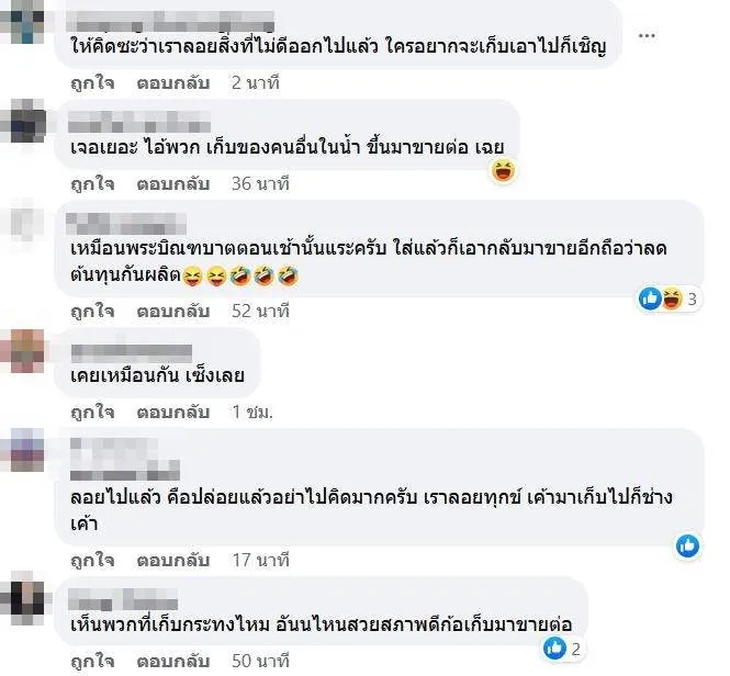 เช่นเหมือนพระบิณฑบาตตอนเช้านั้นแระครับ ใส่แล้วก็เอากลับมาขายอีกถือว่าลดต้นทุนกันผลิต บ้างก้บอกว่า เห็นพวกที่เก็บกระทงไหม อันนไหนสวยสภาพดีก้อเก็บมาขายต่อ