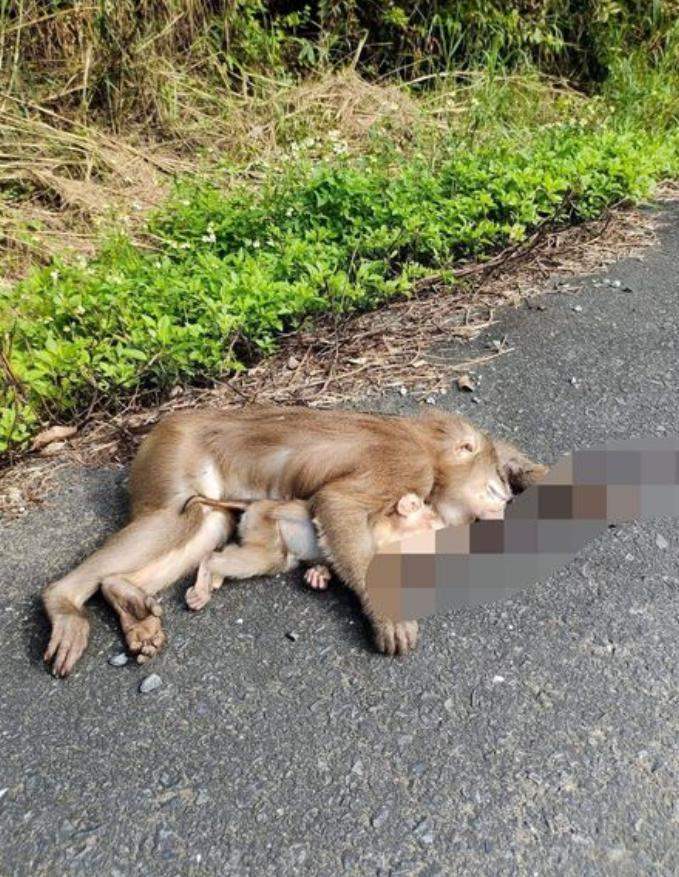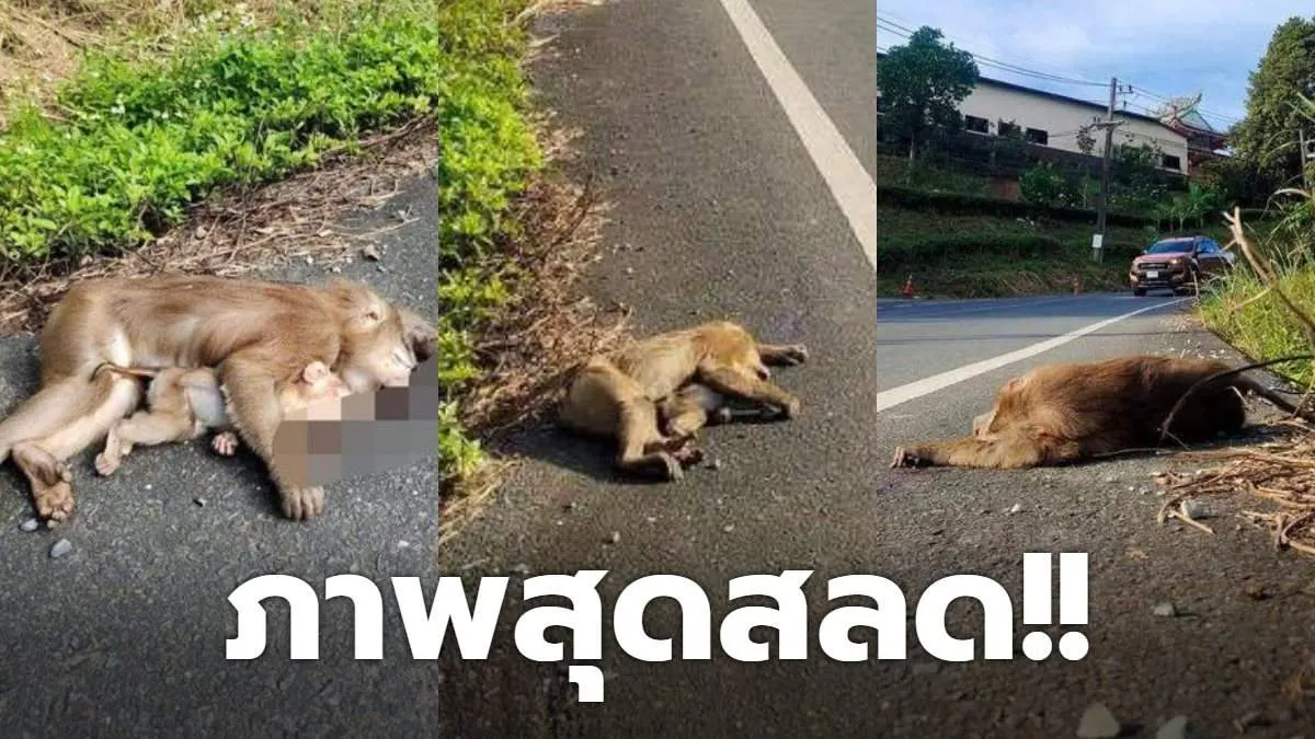 ภาพสุดสลด! "ลิงแสม" แม่ลูกถูกรถชนกอดกันตาย บนถนนเกาะช้าง "รองนายกเกาะช้าง" วอนหยุดลักลอบให้อาหารลิง