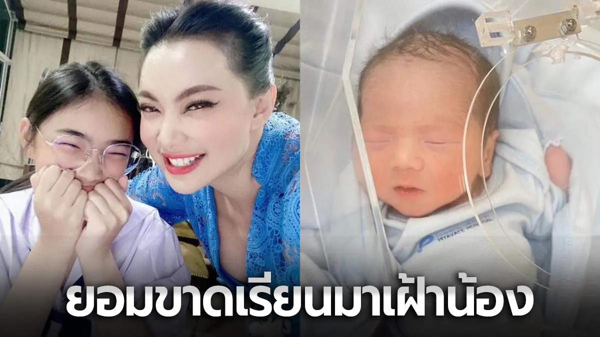 ล่าสุด แม่บุ๋ม ยังโพสต์ภาพโมเมนต์อบอุ่นของ พี่อันดา ลูกสาวคนโต ยืนเฝ้าน้องอเล็กซ์ไม่ห่าง พร้อมแคปชันว่า “เหมือนจะไม่ตื่นเต้น ยอมขาดเรียนเพื่อมาดูน้องเป็นครั้งแรก