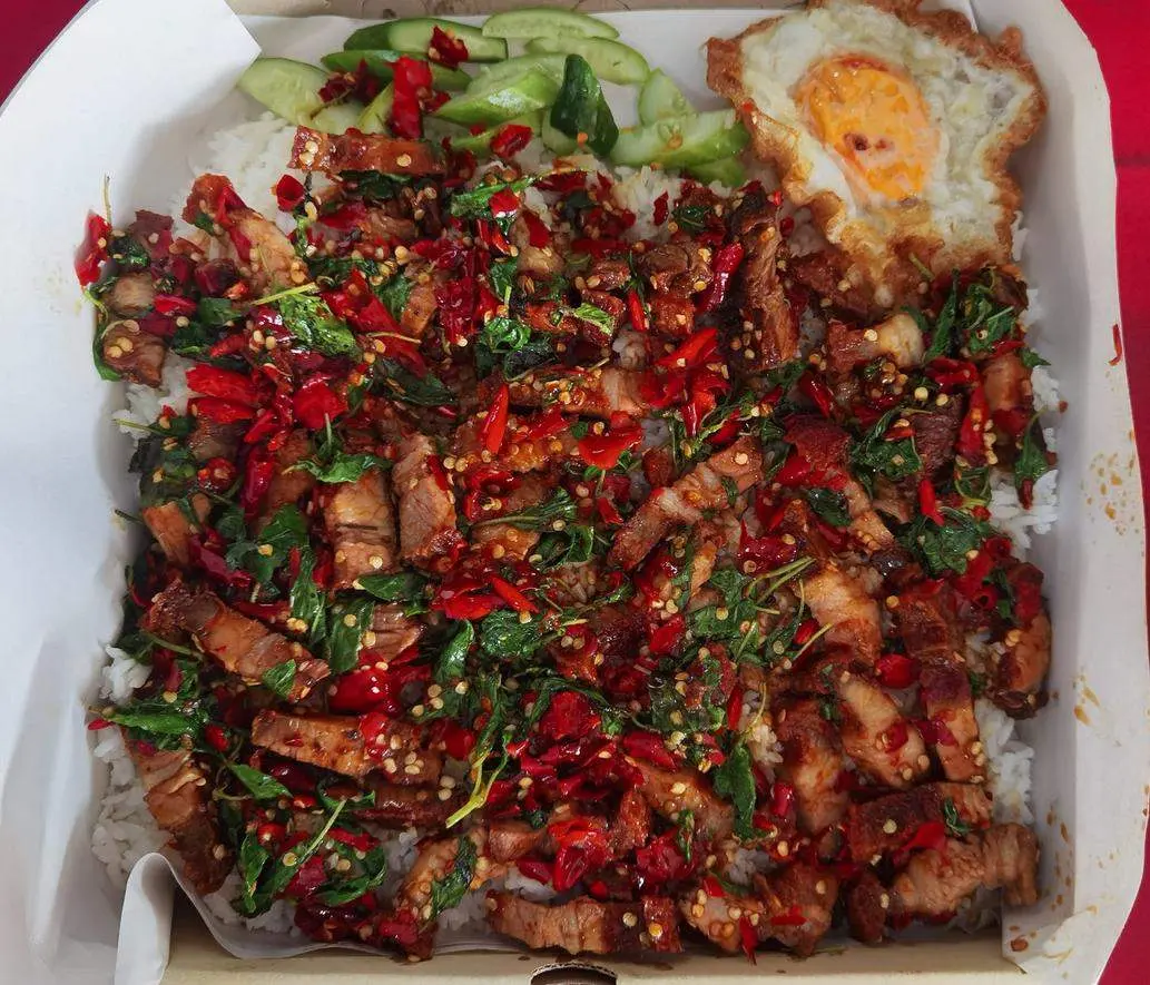 ล่าสุดทางร้านได้โพสต์ภาพผัดกะเพรา 2 กล่อง ที่ลูกค้ากำชับมาว่า “ขอเผ็ดๆ” จนทำให้หน้าตาของอาหารที่ออกมา แค่ดูรูปก็แสบทั้งปาก แสบทั้งท้อง รอได้เลย โดยทางร้านระบุว่า