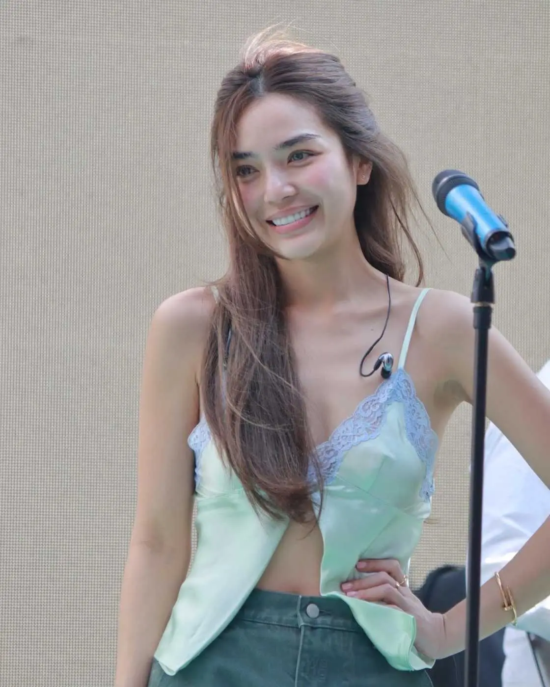 ..ตอนแรกไม่รู้เลยว่าจะมีคนมาดู เพราะเขาบอกว่าเป็นการซาวด์เช็ค แล้วตอนนั้นหนูยังไม่ได้แต่งหน้ายังไม่ได้ทำผม คนกดไลก์เยอะกว่าที่หนูแต่งหน้าอีก..”