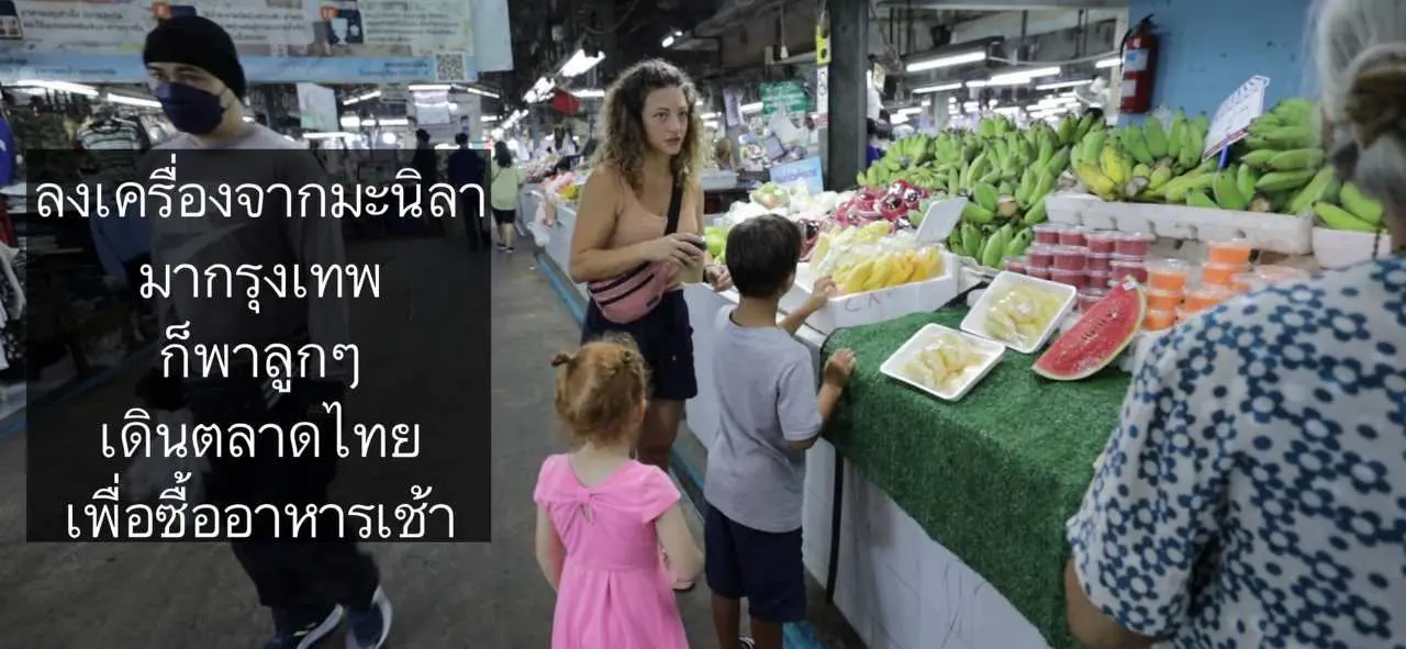 วันแรกที่มาถึงเค้าก็พาลูกๆเดินตลาดเลย เพื่อซื้อของกิน