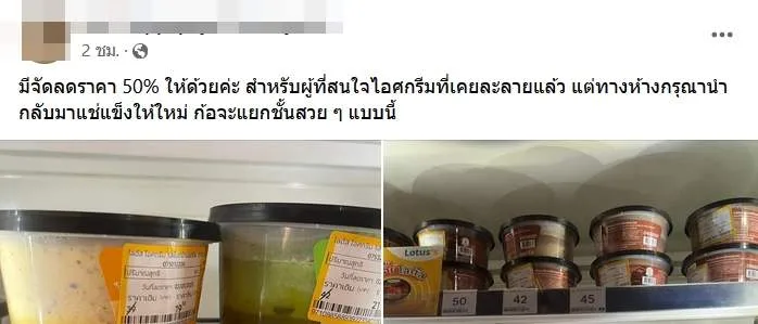 แบบนี้ก็ได้เหรอ? ห้างจัดโปรลด 50% ไอศกรีมที่ละลายแล้ว เอากลับมาแช่แข็งใหม่