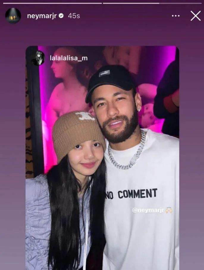 ลิซ่า Blackpink แชะไอจีสตอรี่รูปคู่ “เนย์มาร์” นักเตะคนดังชาวบราซิล ซึ่งทั้งคู่ได้เจอกันที่ร้านอาหารในปารีสหลังจากนั้นเนย์มาร์ก็ได้แชร์สตอรี่นี้ไปยังไอจีของเขาที่มีผู้ติดตามกว่า 202 ล้านคนด้วย