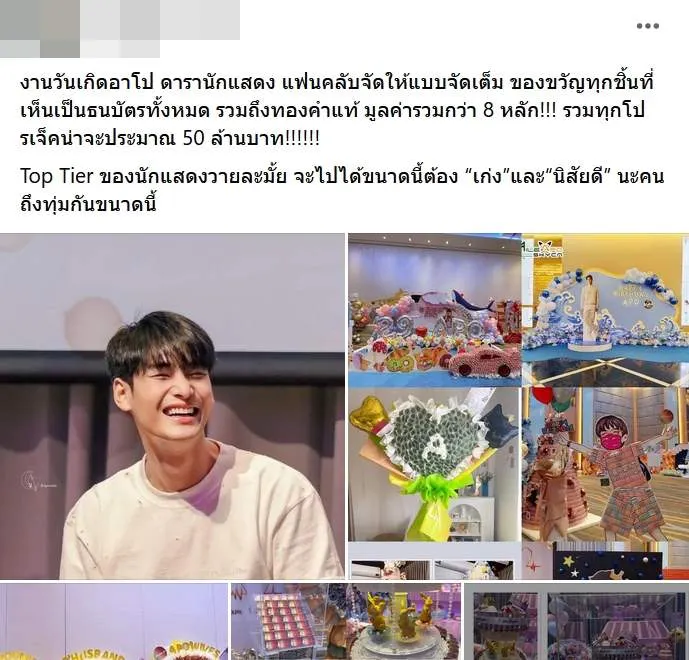งานวันเกิดอาโป ดาราหนุ่มชื่อดัง แฟนคลับจัดหนัก ไม่ต่ำกว่า 50 ล้านบาท