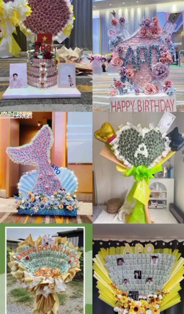 งานวันเกิดอาโป ดารานักแสดง แฟนคลับจัดให้แบบจัดเต็ม ของขวัญทุกชิ้นที่เห็นเป็นธนบัตรทั้งหมด รวมถึงทองคำแท้ มูลค่ารวมกว่า 8 หลัก!!! รวมทุกโปรเจ็คน่าจะประมาณ 50 ล้านบาท!!!!!!
