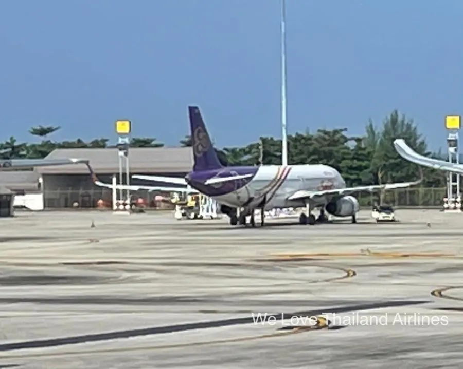 เครื่อง Thaismile Airbus 320 ขณะนี้อยู่ระหว่างการจอดรอการตรวจสอบและซ่อมแซมอยู่ที่ลานจอด Delta สนามบินภูเก็ต