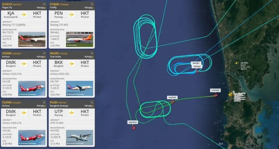 ต่อมาทราบภายหลังว่า พื้นผิวทางวิ่งแตก มีขนาด 1 X 1 เมตร จึงปิดซ่อมทางวิ่งช่วงเวลาประมาณ 13.55-14.50 ส่งผลทำให้เครื่อง Arrival สนามบินภูเก็ตต้องบินวนรอ ซ่อมพื้นผิวทางวิ่ง ประมาณ 20 ลำ
