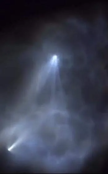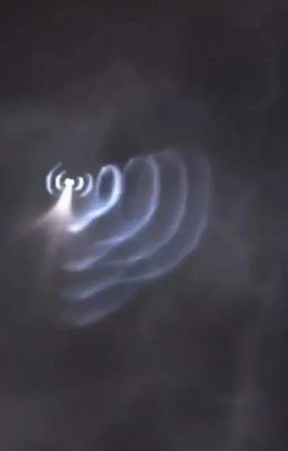 วงแหวนคลื่นแสงที่ปล่อยออกมาจาก UFO แสดงถึงการเคลื่อนที่ของคลื่นของแผ่นดินไหวใต้ดิน