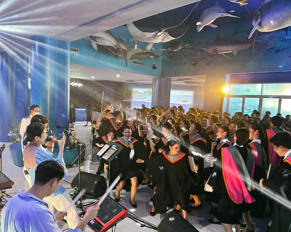 ฉีกทุกกฎรับปริญญาในไทย ที่ มหาวิทยาลัยบูรพา บางแสนปีนี้รับในอควาเรียม มีเงือกมาโชว์มีคอนเสิร์ต พร้อมแสง สี เสียงมันส์กว่านัดกันที่ร้านไปอีก