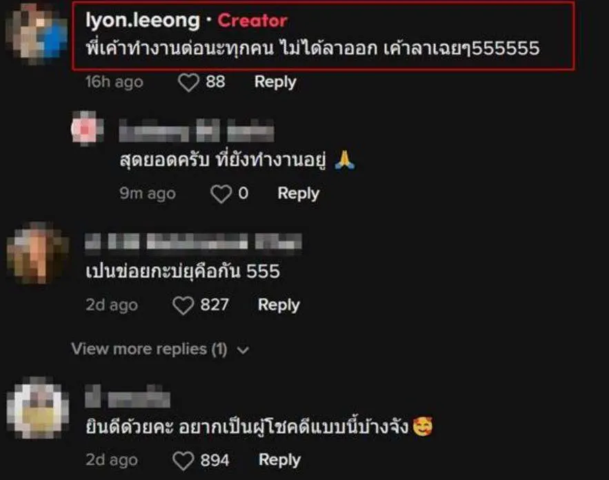 เก้าอี้ที่ทำงานของพี่ที่ถูกสลากฯ ว่า ที่โต๊ะพี่ที่ทำงานไม่เห็นพี่เขาทำงานอยู่ เหลือแต่เก้าอี้ว่างเปล่า ทำเอาชาวเน็ตเข้าไปแชร์ความเห็นกันสนั่น ว่า ถ้าเป็นเราก็คงจะลาออกแต่ท้ายที่สุด สาวคนเดิมได้มาเฉลยแล้วว่า เศรษฐีคนใหม่ พี่เขาแค่ลางานเฉยๆ ไม่ได้ลาออก