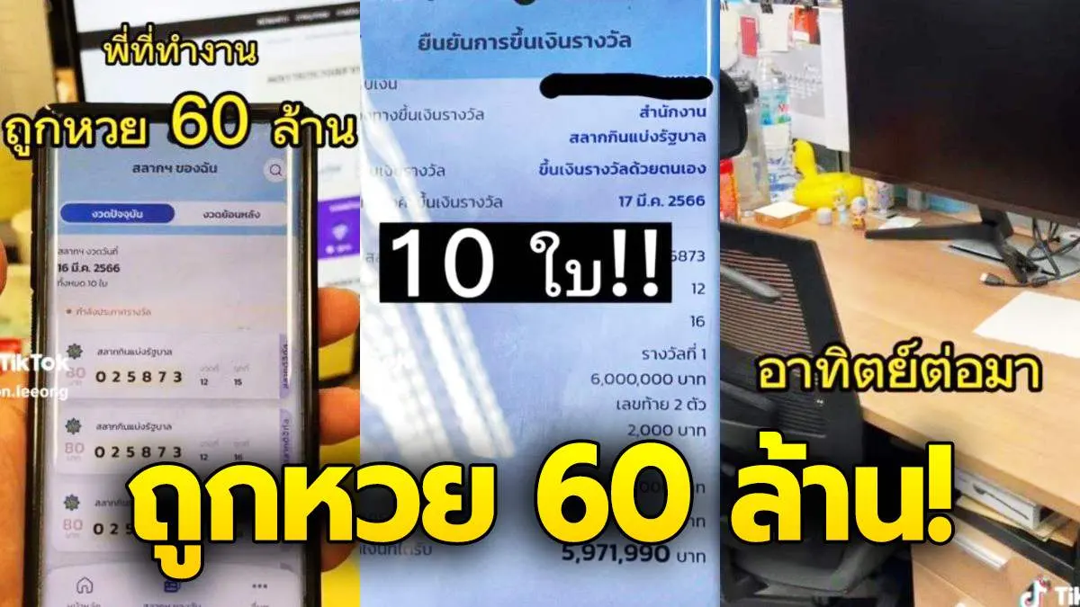 @lyon.leeong พี่ที่ทำงาน ถูก 60 ล้าน!!! #ถูกหวย #หวยรัฐบาลงวดนี้ #หวยไทย #tiktok #หวยรัฐบาลไทย #หวย #หวยรัฐ ♬ เสียงต้นฉบับ - lyon.leeong