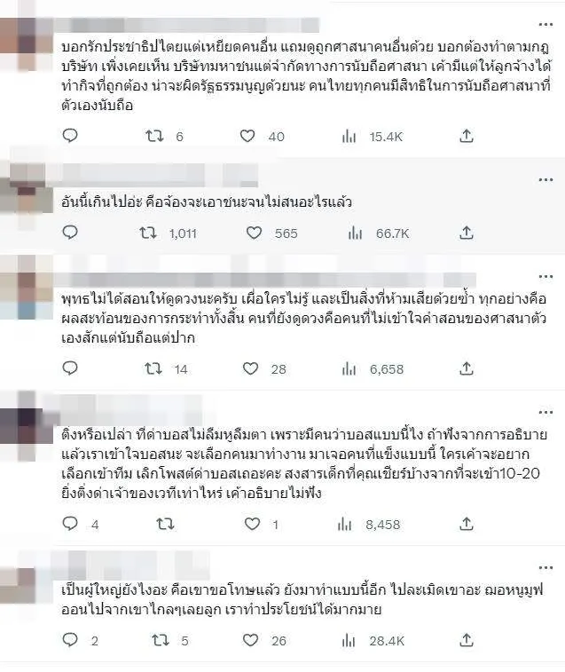 จากกรณีที่ "เฌอเอม ชญาธนุส" มิสแกรนด์ลำพูน ปฏิเสธการดูดวง เพราะเหตุผลในเรื่องของศาสนา พร้อมคืนไมค์ ด้าน "ณวัฒน์ อิสรไกรศีล" ตอบกลับยาว ทำเอากลายเป็นที่พูดถึงอย่างมากบนโลกออนไลน์ ล่าสุดเมื่อวาน บอสณวัฒน์ ให้สื่อสัมภาษณ์ประเด็นเดือดดังกล่่าว จนมีผู้ใช้บัญชีทวิตเตอร์มากมายแห่เข้ามาแสดงความเห็นต่างๆเช่น เอิ่มมมมมม
