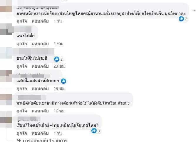 เพจดัง ลุยจีน ได้ออกมาโพสต์ภาพ พร้อมข้อความ โดยระบุว่า..เมื่อวานที่เพจได้โพสต์ข่าวเรื่อง โรงเรียนนานาชาติจีนแห่งแรกในไทยไป ก็มีเสียงจากหลายๆท่านมาบอกว่า โรงเรียนที่ใช้ภาษาจีนสอนเป็นหลักในไทยมีมานานมากๆแล้ว ค่าเทอมไม่แพง ฯลฯ เช่น หลายโรงเรียนในภาคเหนือ ในภาคกลาง ในภาคใต้บลาๆๆ