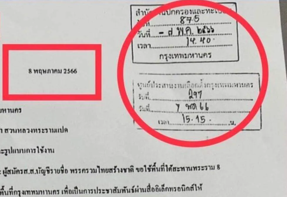 โดยเอกสารดังกล่าวลงวันที่เอกสารไว้ ‘8 พฤษภาคม 2566’ และทางกรุงเทพมหานครโดยสำนักงานปกครองและทะเบียน และศูนย์ประสานงานเลือกตั้งกรุงเทพมหานคร ลงวันที่รับทราบไว้ ‘7 พฤษภาคม 2566’ นั้น