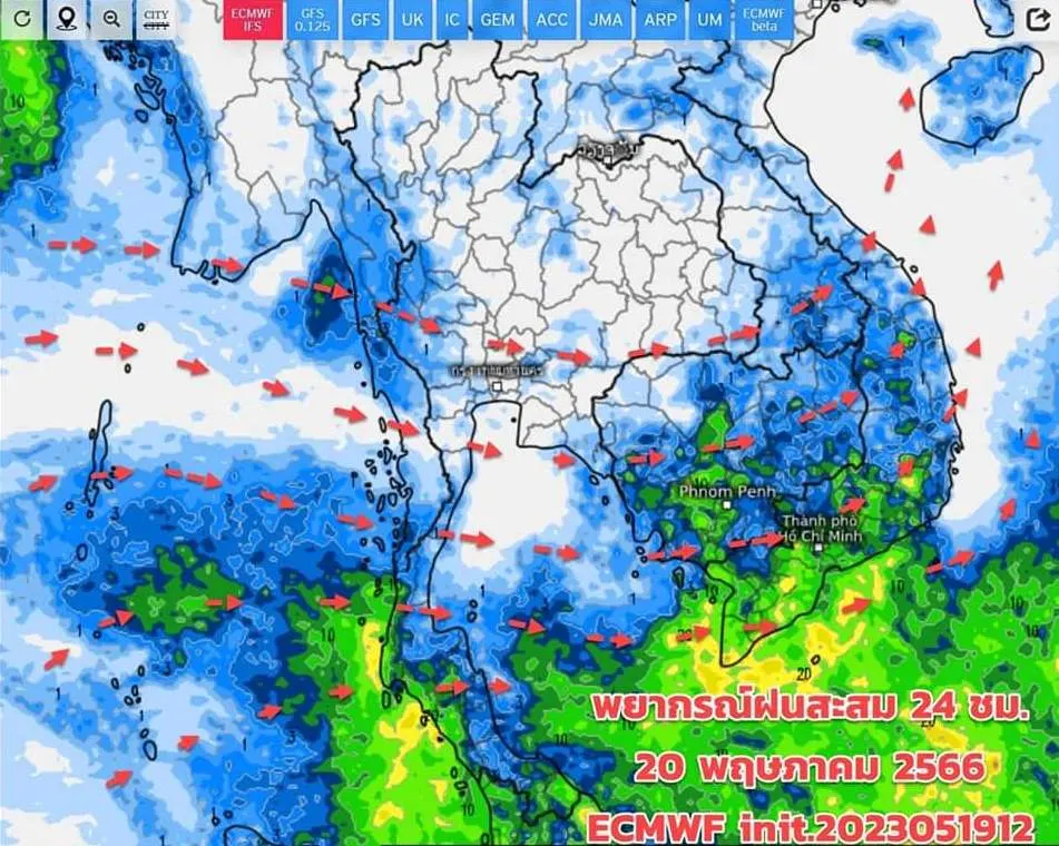 สำหรับการพยากรณ์อากาศสำหรับประเทศไทย 06:00 น. วันนี้ ถึง 06:00 น. วันพรุ่งนี้ มีดังนี้
