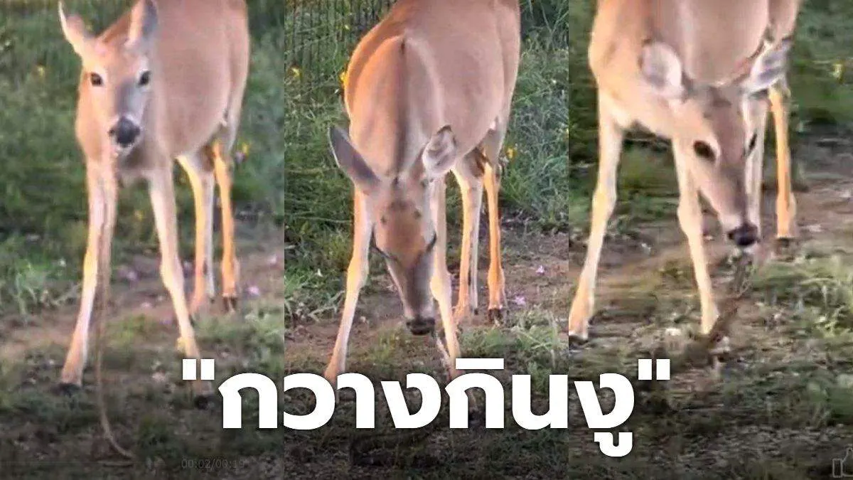 เกิดปรากฎการณ์ผิดธรรมชาติ! เผยคลิป "กวางกินงู" ชาวเน็ตลั่น เคี้ยวกินเป็นหญ้าเลย