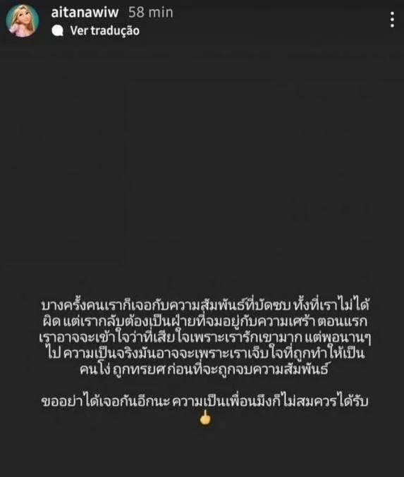 กลายเป็นประเด็นร้อนขึ้นมาทันที เมื่อพี่สาวของหนุ่ม "โอบ นิธิ" ที่น่าจะกำลังเดือดจัด ได้โพสต์ข้อความลงในสตอรี่ไอจี ประมาณว่า ถูกทำให้เจ็บและดูเป็นคนโง่ ทั้งยังถูกทรยศก่อนที่จะจบความสัมพันธ์ แบบนี้เป็นเพื่อนก็ไม่สมควรได้รับ